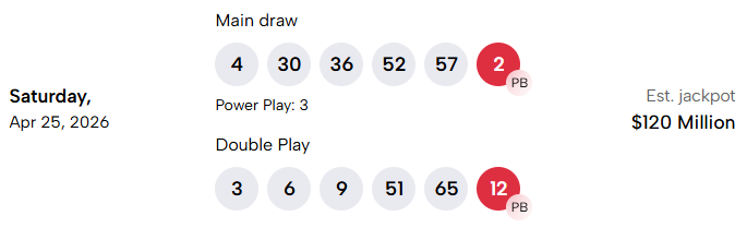 April 24-25, 2026 Winning Numbers